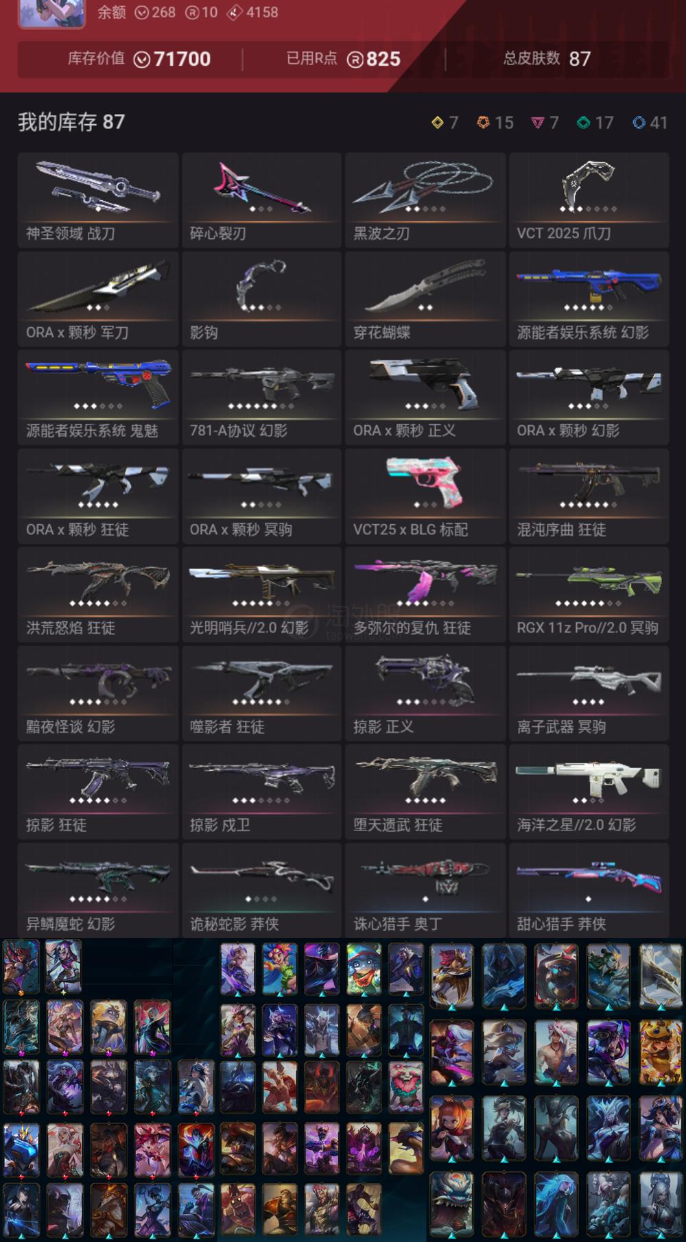 【US354-美服】VCT25爪 颗秒套装 狂徒:混沌/流脓/多弥尔/掠夺/弃王 幻象:781/魔蛇/黯夜/街机 其他:黑波刀(联盟69皮肤 破碎者金克丝 沉溺暗影卢锡安)